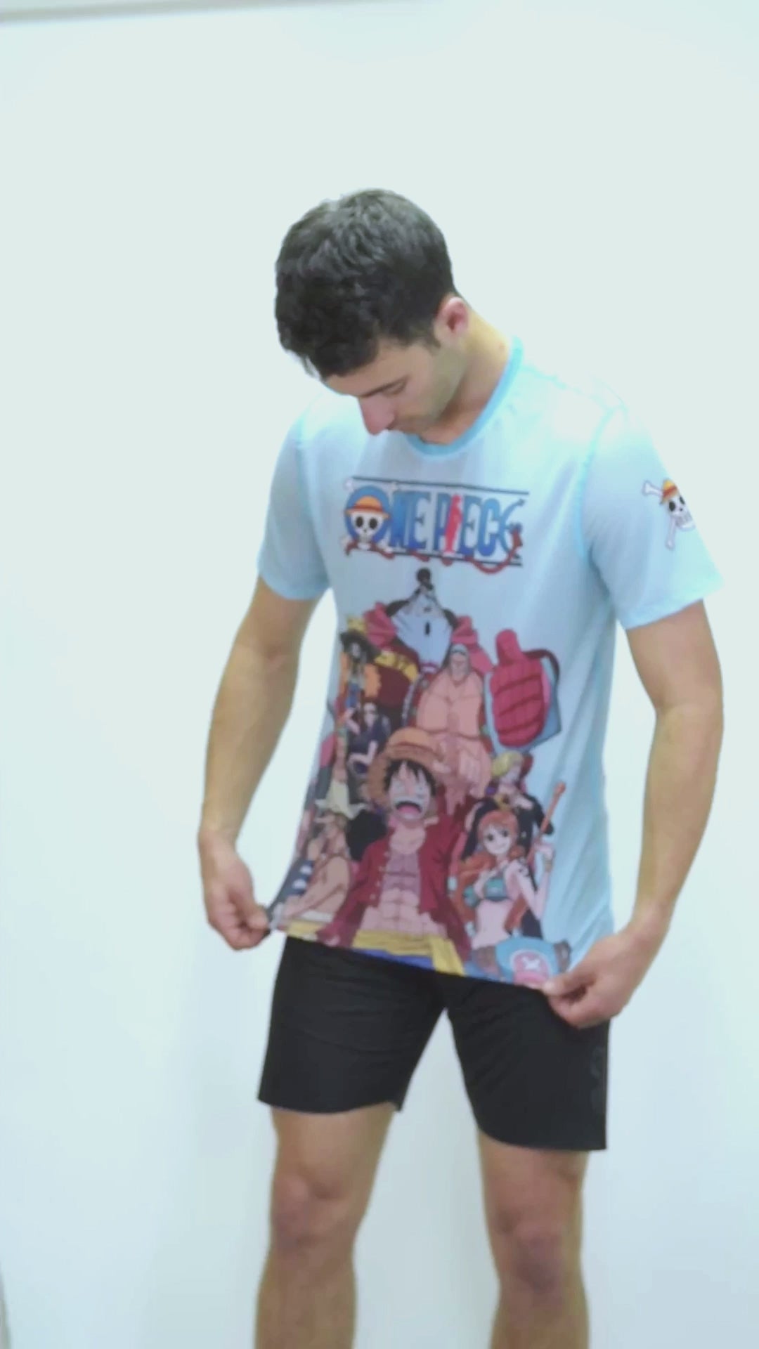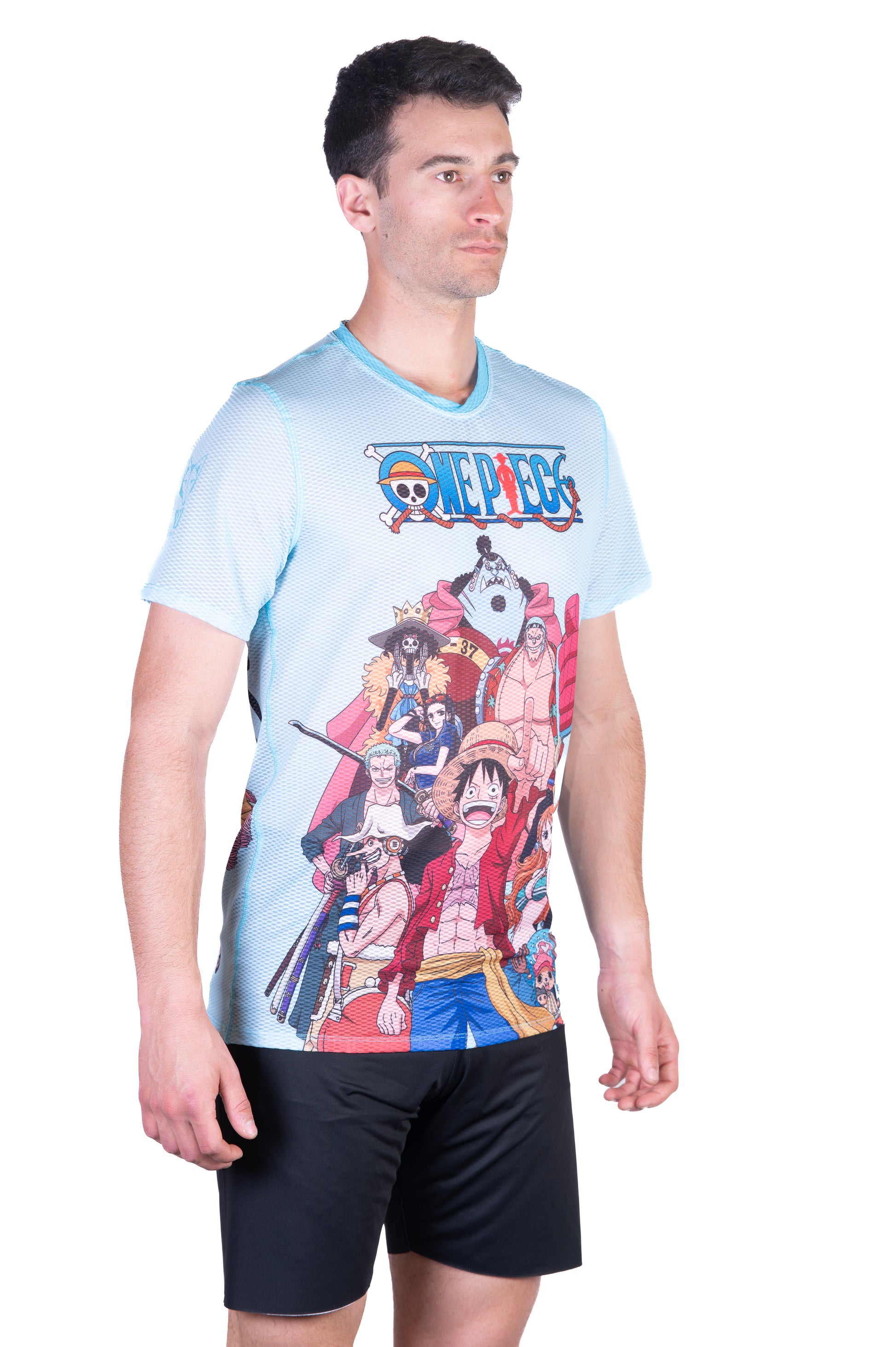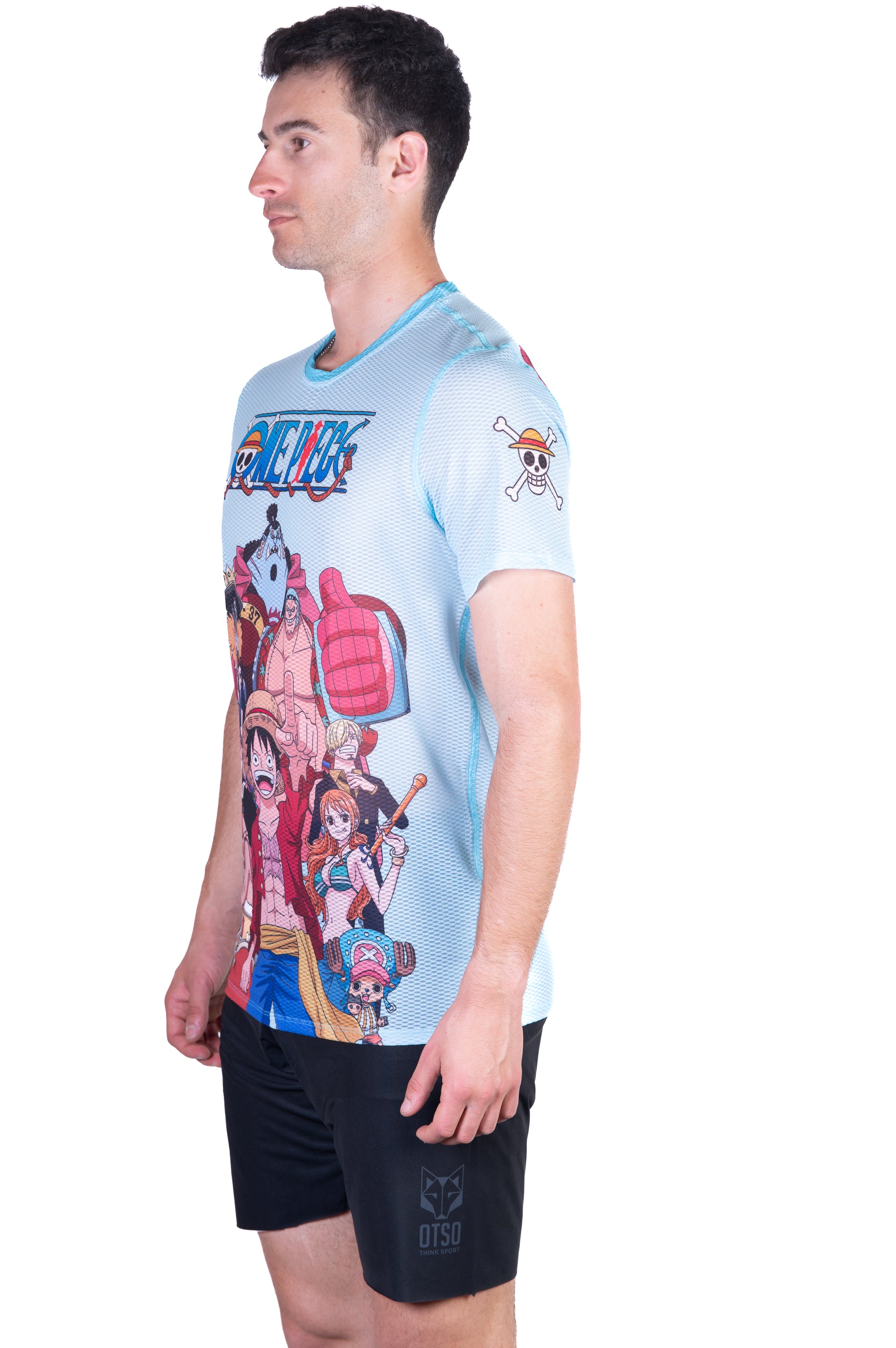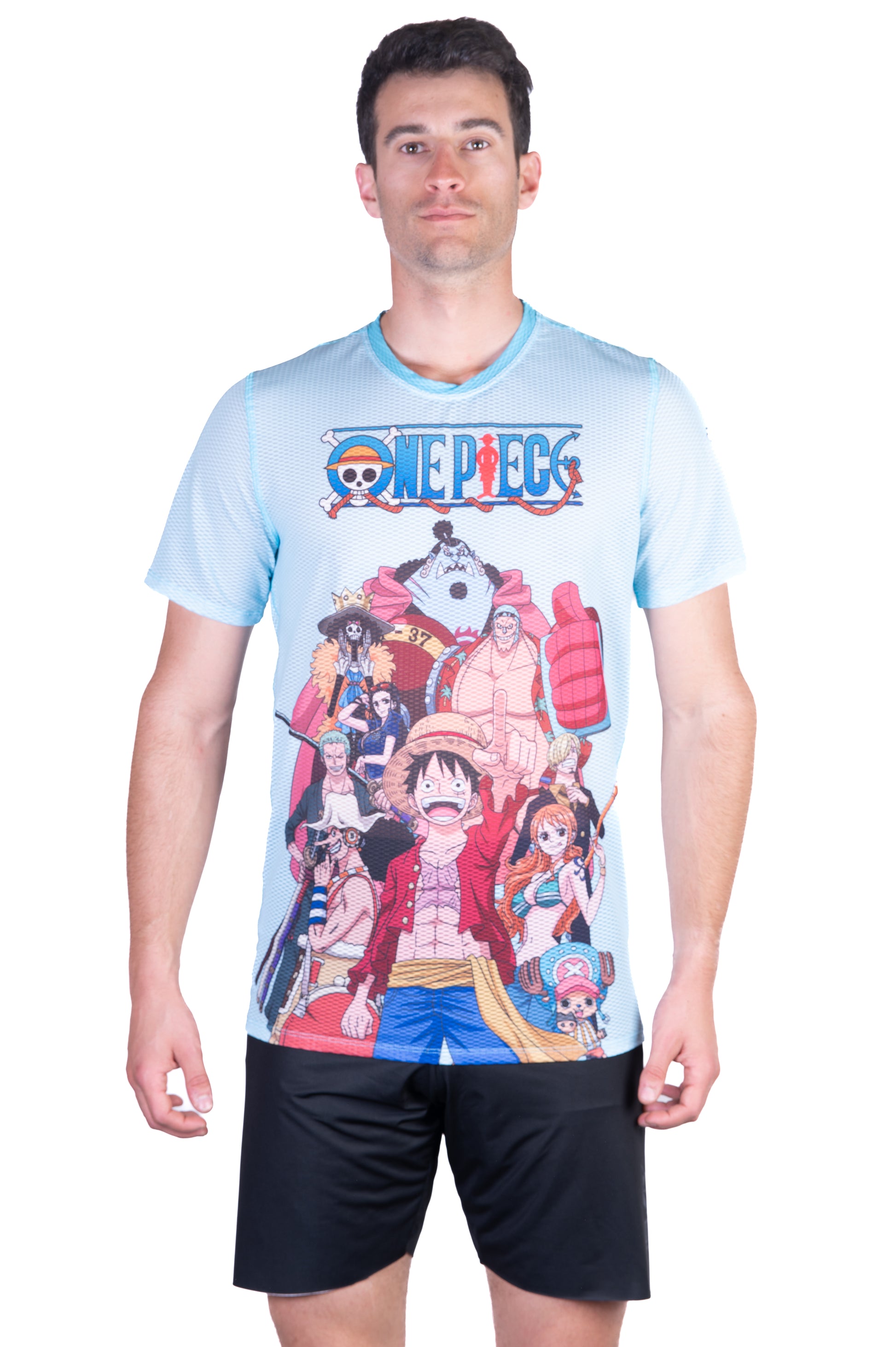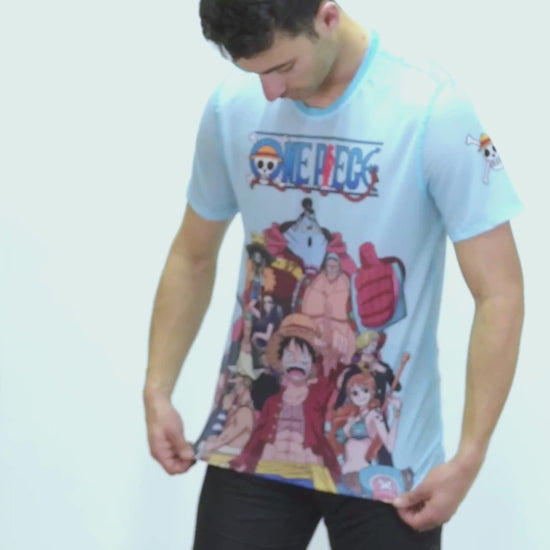T-shirt de manga curta para homem - One piece fishman straw hat crew turquoise